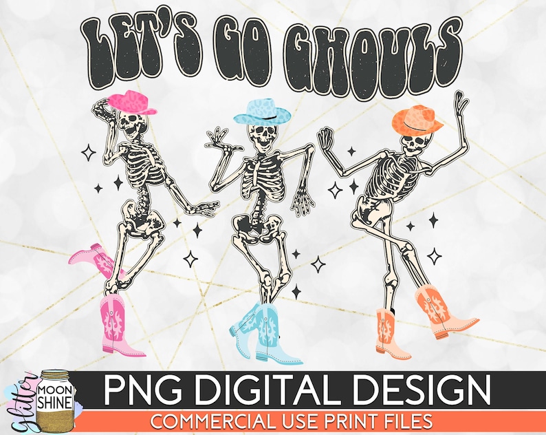 Let's Go Ghouls Dancing Skeletons PNG Print File for Sublimation Or Print